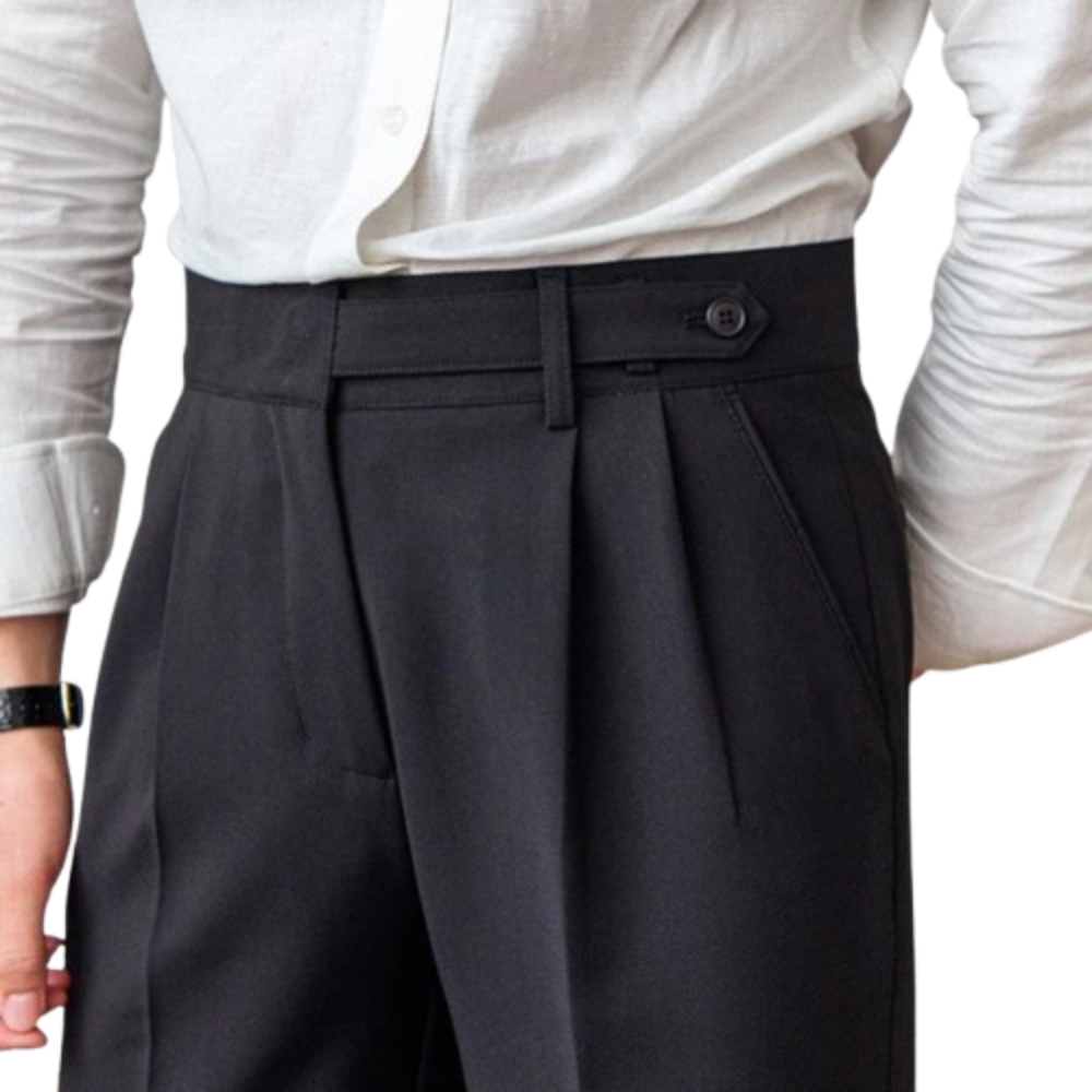 Refined, sophisticated, and effortlessly classic—our Men’s Black High-Waisted Suit Trousers embody the essence of Old Money style. Designed with a vintage-inspired high waist, stylish belt detail, and a slim straight-leg fit, these trousers offer a perfect blend of tradition and modern elegance. Crafted from premium fabric, they provide superior comfort and a tailored silhouette, making them ideal for business, formal events, or everyday smart casual wear.