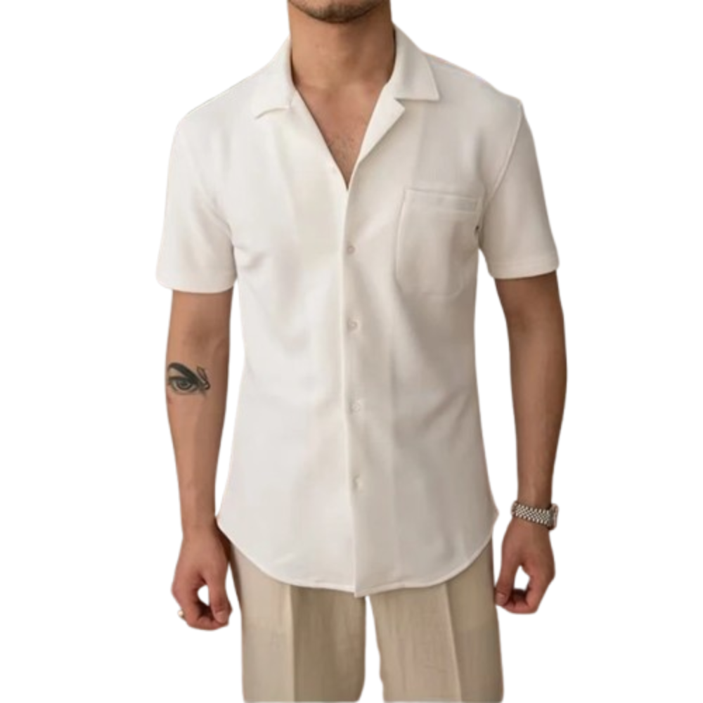 Exude effortless sophistication with our Men’s Short-Sleeve Button-Up Shirt, a staple of the refined Old Money aesthetic. Designed with a classic turn-down collar, button-up front, and a vintage-inspired solid color, this shirt is perfect for summer elegance. The relaxed fit and chest pocket add both style and functionality, making it ideal for casual outings, resort wear, or smart-casual occasions. Crafted from premium breathable fabric, it ensures comfort while maintaining a polished, timeless look.